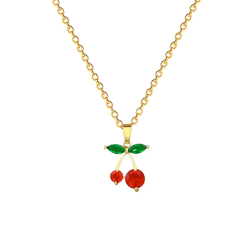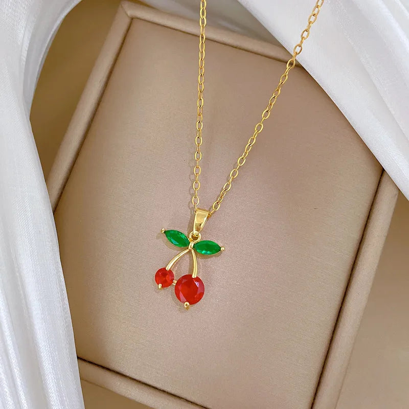 Chapada Oro De 18 Quilates Bañado En Oro Cereza Acero Titanio Cobre Estilo Clásico Acero Titanio Collar Colgante.