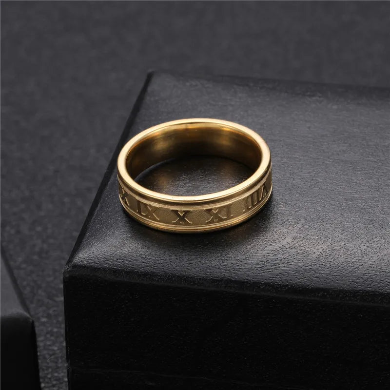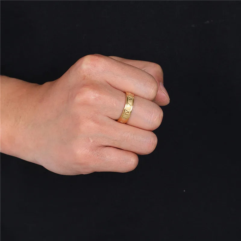 Casual Ronda Acero Inoxidable 304 Enchapado Chapados en oro de 18k Hombres Anillos.