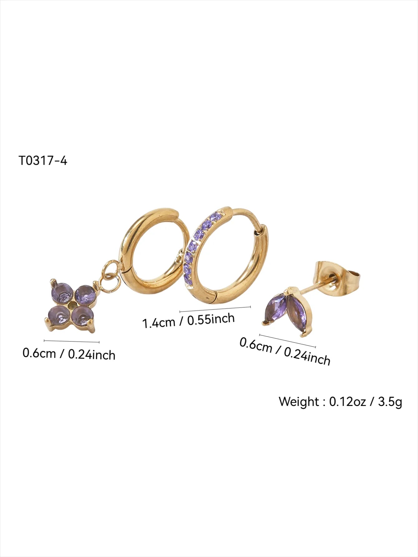 Pendiente trébol de cuatro hojas dorado púrpura
