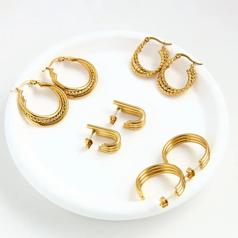 1 Par Vacaciones Playa Geométrico Enchapado Acero Inoxidable 304 Chapados en oro de 18k Aretes.